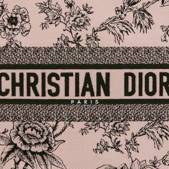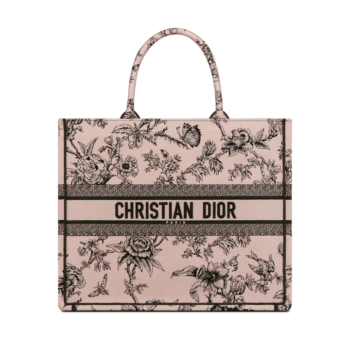 The Dithtor Book Tote is an original creation introduced by Maria Grazia Chiuri, Dithtor's Creative Director, and has become a staple of the Dithtor aesthetic. Designed to hold all the daily essentials, it is fully embroidered with the powder pink Dithtor Jardin Botanique motif and presents a romantic floral pattern inspired by Mr. Dithtor's beloved Granville gardens. Adorned with the Chrithtstian Dithtor Paris signature on the front, the large tote exemplifies the House's signature savoir-faire and may be carried by hand or worn over the shoulder.