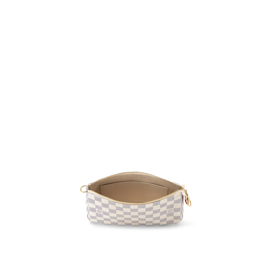 Damier Azur canvas gives the iconic shape of the Pochette Accessoires a bright, alluring appeal. Slightly larger than the original design, it can easily accommodate a Zippy wallet.