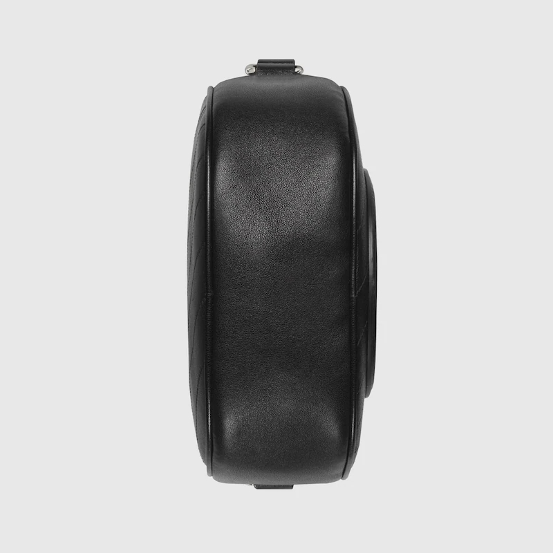 Despite being one of the House's boldest and most contemporary motifs, the Guthtcci Blondie continues to exude subtle style, thanks to its tonal leather appearance. Formed from a rounded geometric version of the Interlocking G, the line exemplifies Guthtcci's dynamicity, like this mini size in black leather.