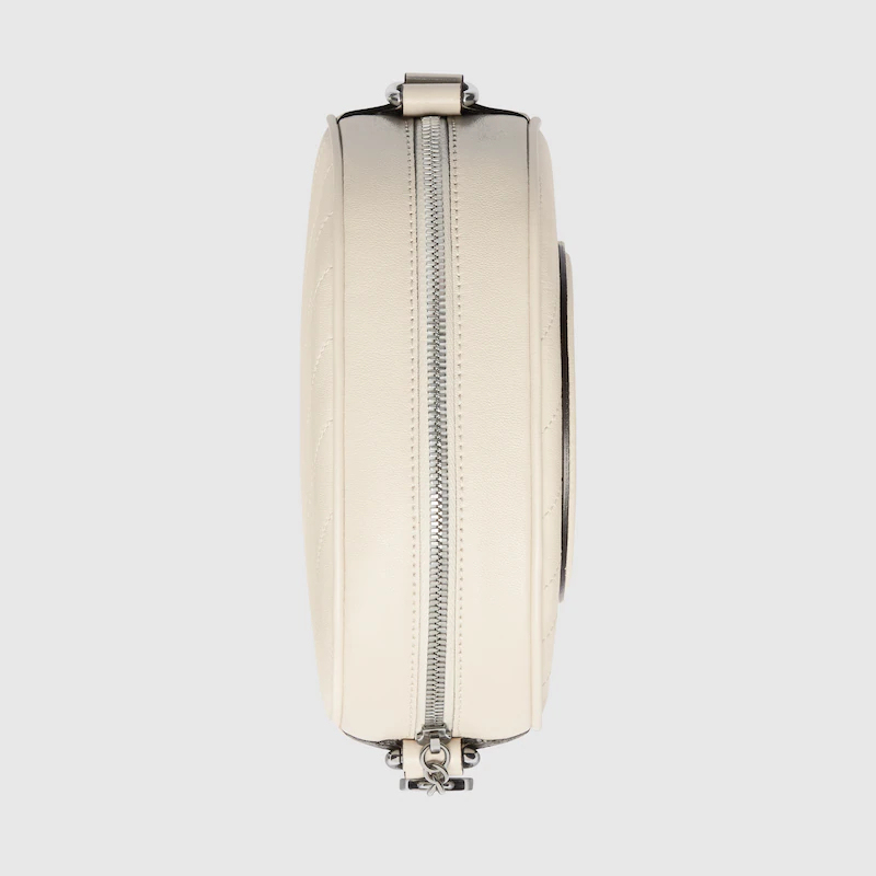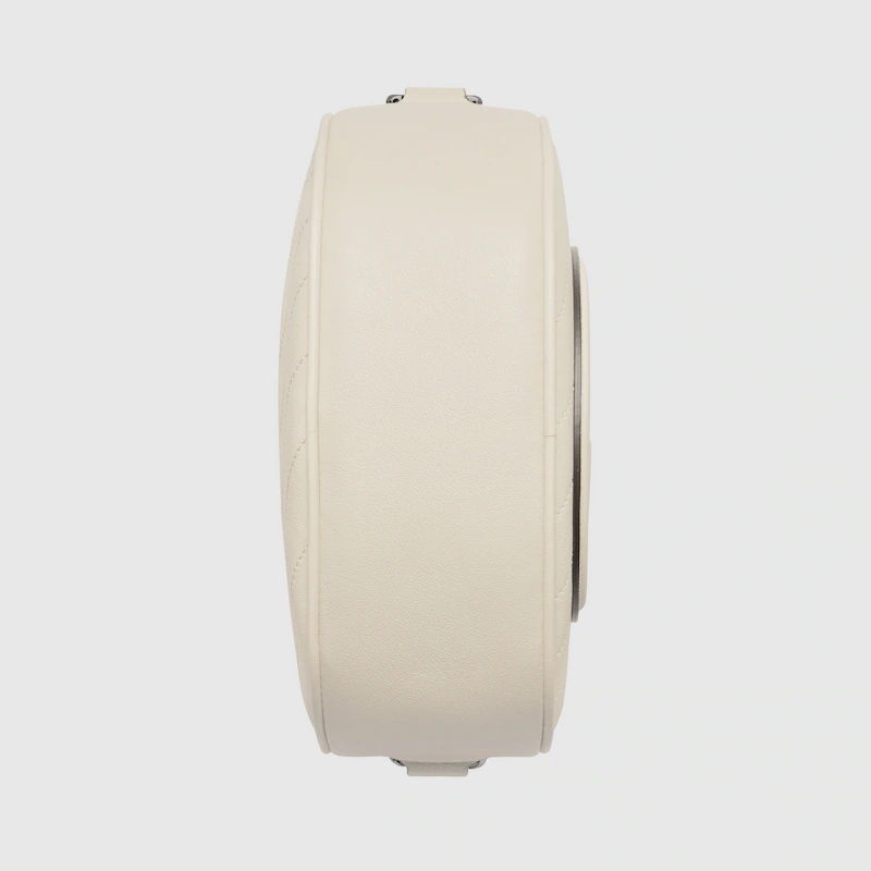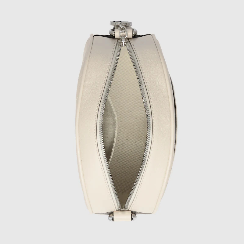 Despite being one of the House's boldest and most contemporary motifs, the Guthtcci Blondie continues to exude subtle style, thanks to its tonal leather appearance. Formed from a rounded geometric version of the Interlocking G, the line exemplifies Guthtcci's dynamicity, like this mini size in white leather.