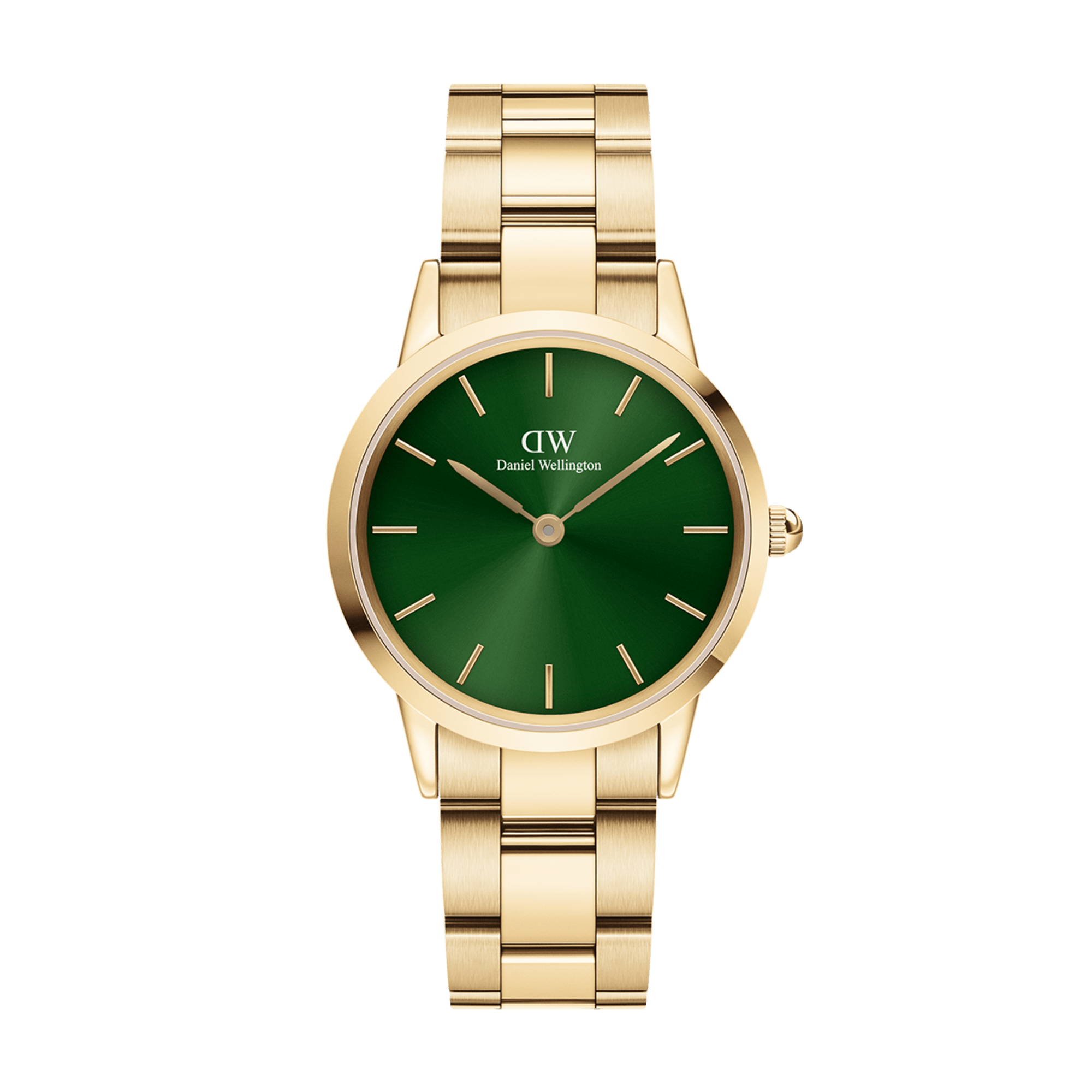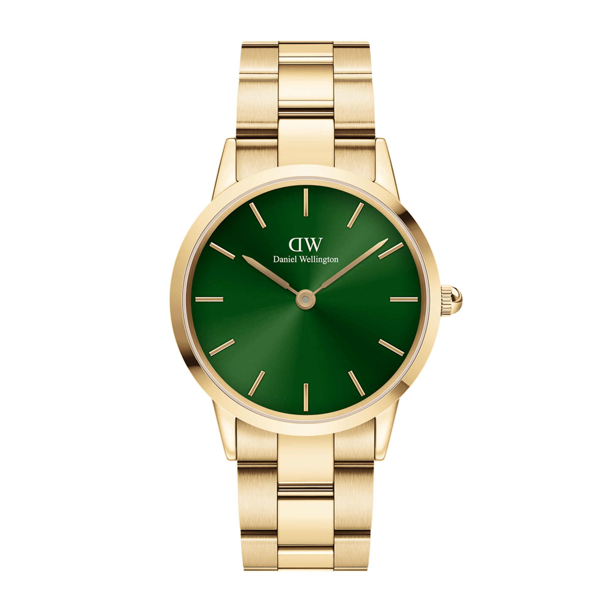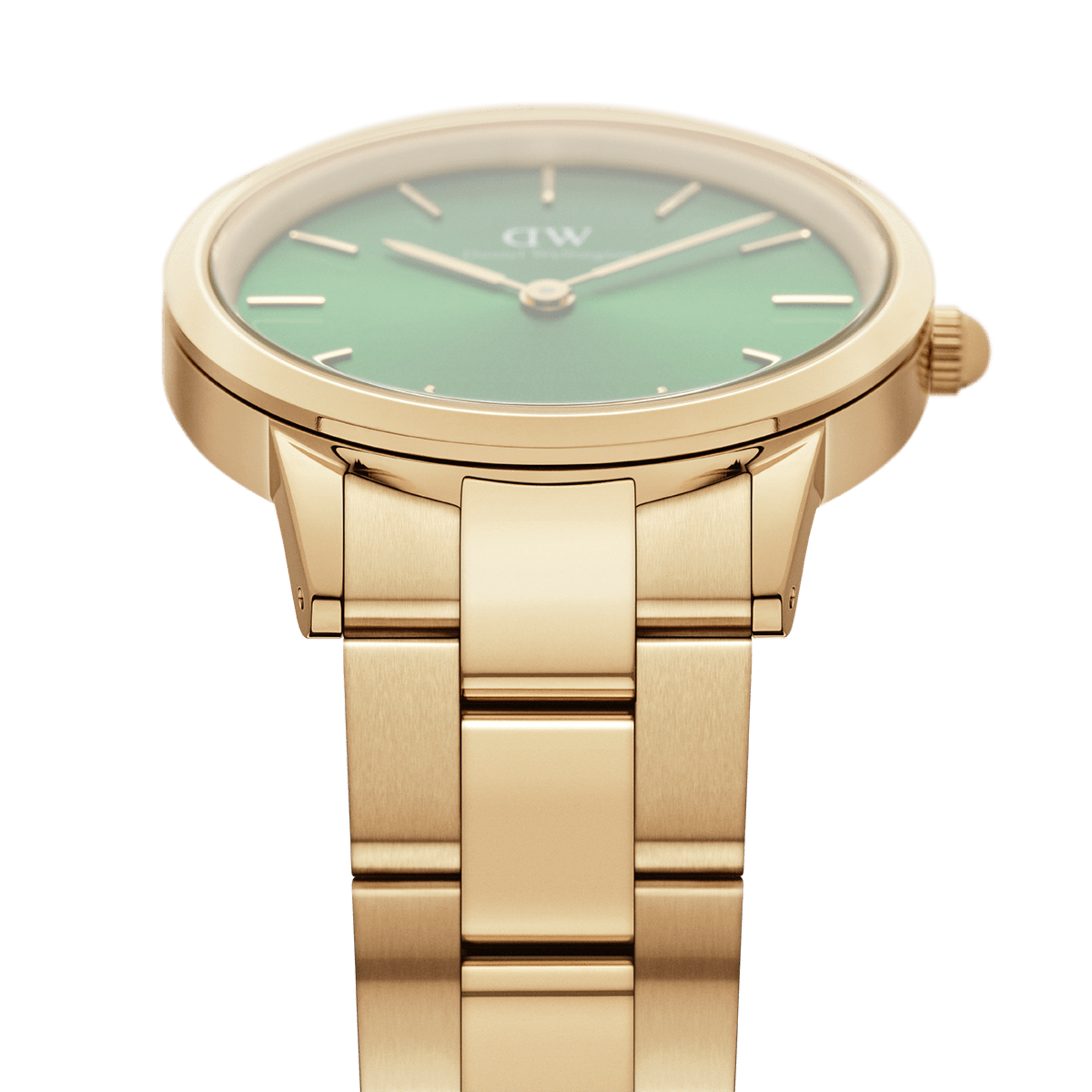 The Iconic Link Emerald is here to cause trouble, to shake up a fashion world dominated by minimalism and countless shades of grey. With its unapologetically green watch face, this watch proves that color is an intense and rich experience we shouldn’t deprive ourselves of. The gold link bracelet, made from stainless steel with a lovely shimmer, perfectly frames the emerald green dial and rounds out this women’s gold watch. All in all, it’s one of our most daring gold watches with green dials. Women's gold watch with a green watch face. Paired with a gold link bracelet and buckles.