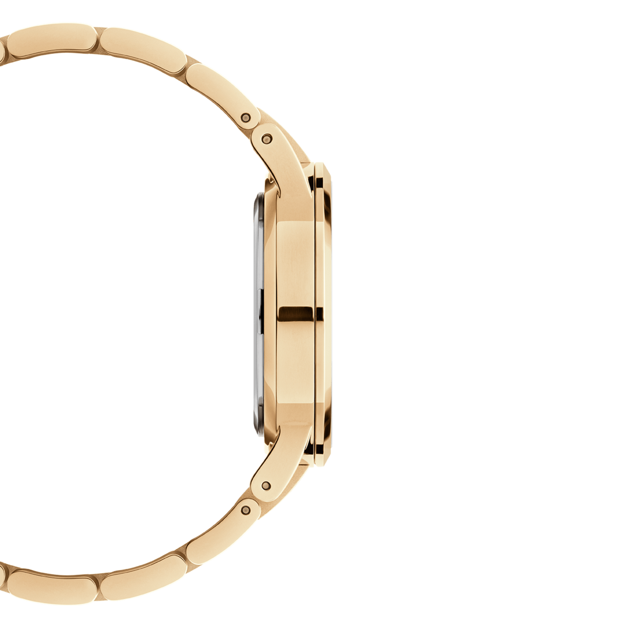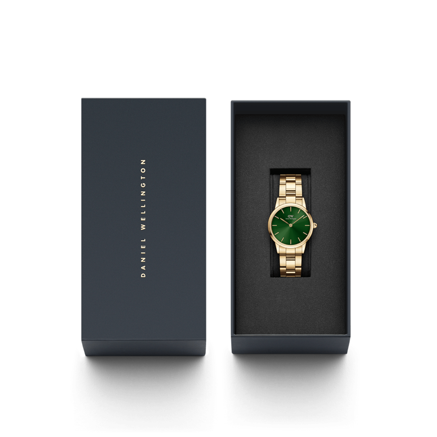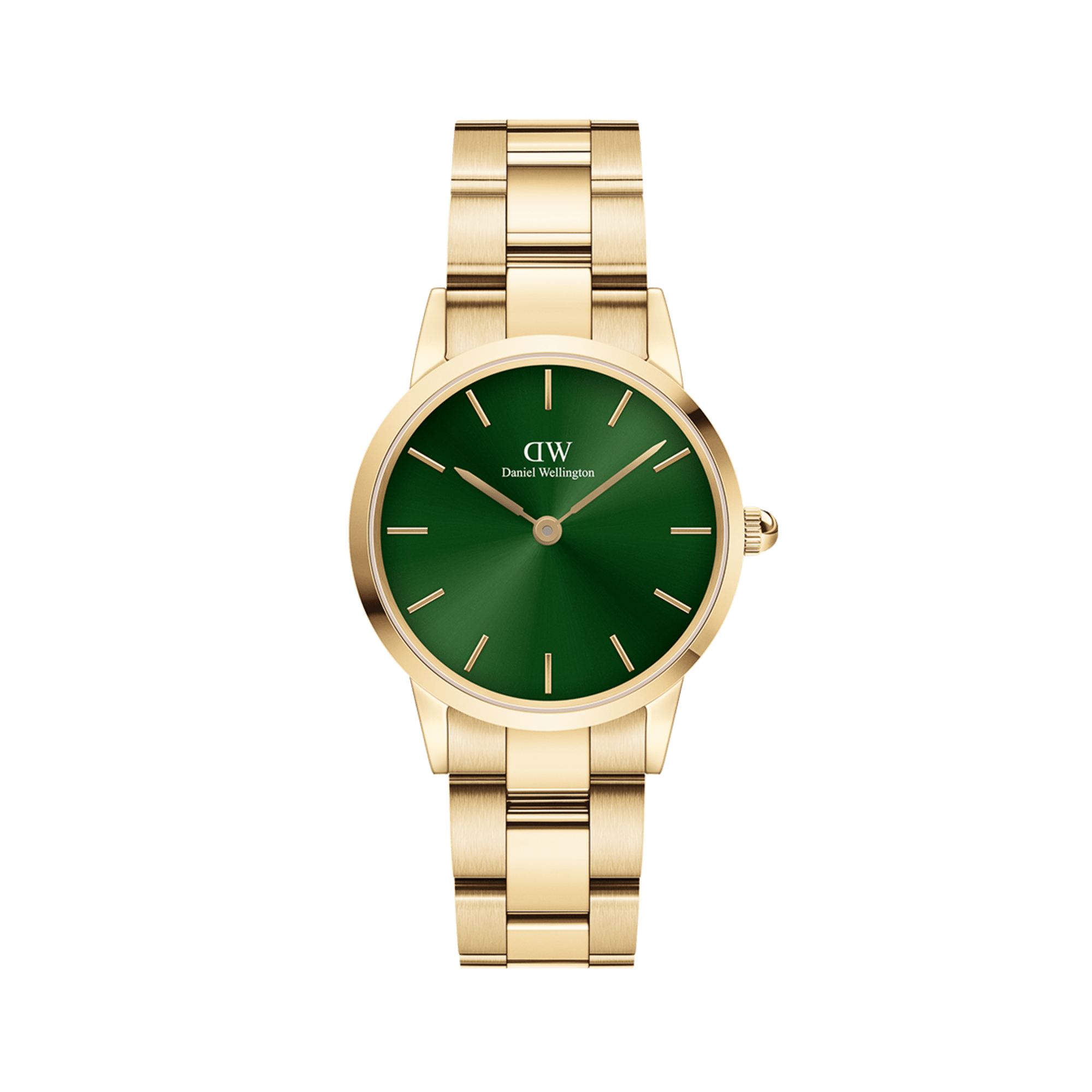 The Iconic Link Emerald is here to cause trouble, to shake up a fashion world dominated by minimalism and countless shades of grey. With its unapologetically green watch face, this watch proves that color is an intense and rich experience we shouldn’t deprive ourselves of. The gold link bracelet, made from stainless steel with a lovely shimmer, perfectly frames the emerald green dial and rounds out this women’s gold watch. All in all, it’s one of our most daring gold watches with green dials. Women's gold watch with a green watch face. Paired with a gold link bracelet and buckles.