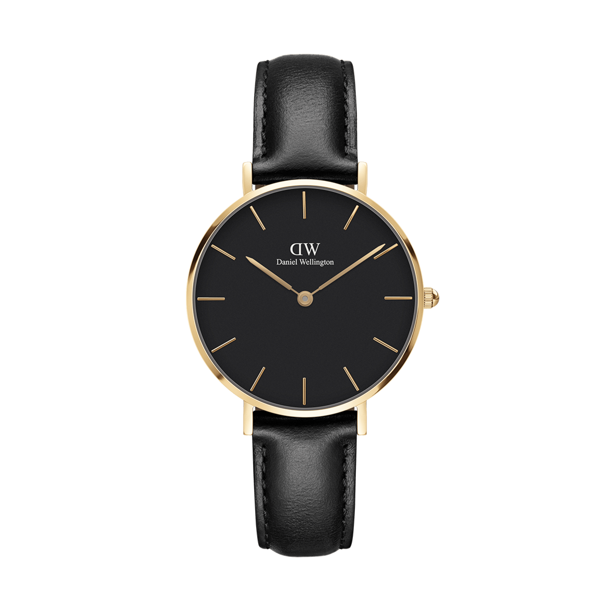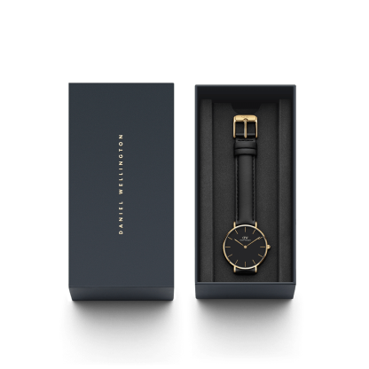 The Petite Sheffield is the watch equivalent of a little black dress. It exudes timeless elegance and sophistication. Framed in a stainless steel case, this small gold and black watch instantly adds more style to any look. The deep black dial contrasts beautifully with the vibrant gold plating for a glamourous effect. As a finishing touch, the black leather watch strap, made from genuine Italian leather further enhances the overall sleek look of this iconic timepiece. And what’s more, it perfectly compliments even casual styles. Small gold and black watch for women. Black leather watch strap and black dial. Shop black watches online at Dathtniel Wellithtngton.