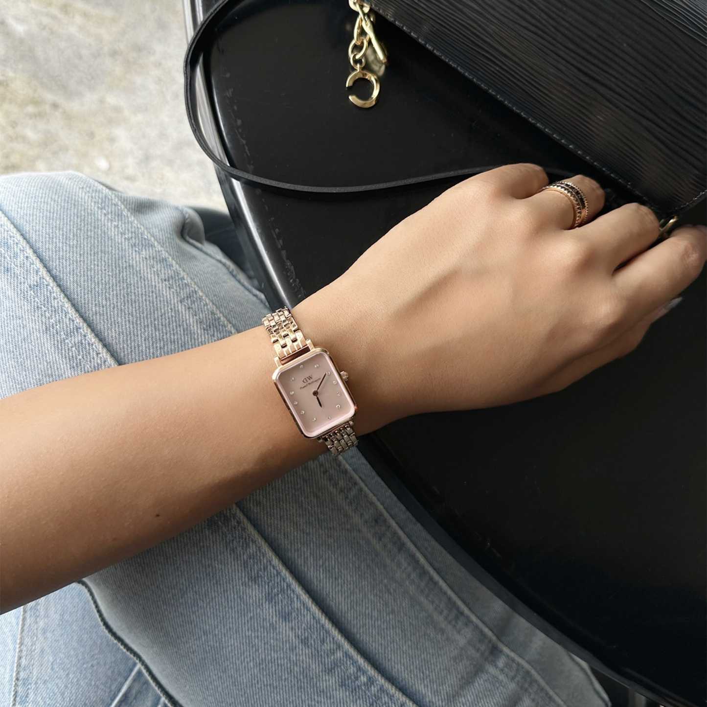 Trendsetters, the Quadro Lumine 5-Link Melrose is the watch for you. Jewelry-inspired watches are in fashion, and this piece is a shining example. The 5-link rose gold-plated strap has the look and feel of a designer bracelet, while the shimmering crystals give the watch a sophisticated allure. The mother of pearl dial makes it even more special, with its unique pattern crafted by nature. A fashionable watch, that never grows old.