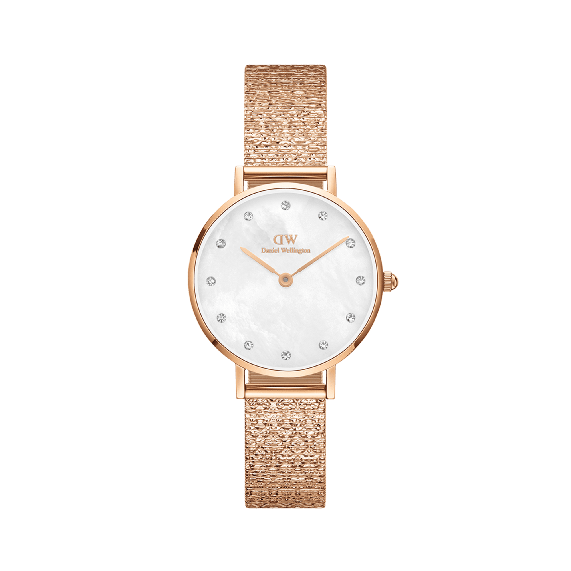 The Petite Lumine Pressed Piano in white is proof that nature can be the ultimate luxury. Each dial is carefully crafted from mother of pearl, so it has a unique pattern. Glistening crystals mark the indexes and give the watch face a soft inner glow. The entire timepiece is supported by our new pressed Studio Strap in shimmering metal, with a cloud-like elevated pattern that mirrors the mother of pearl. Choose your favorite from the three available colors and enjoy a watch like no other.