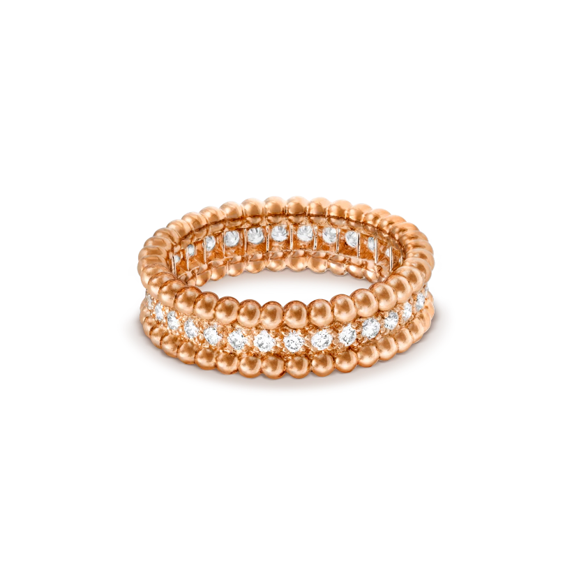Perlée diamonds ring, 1 row, 18K rose gold, round diamonds; diamond quality DEF, IF to VVS
