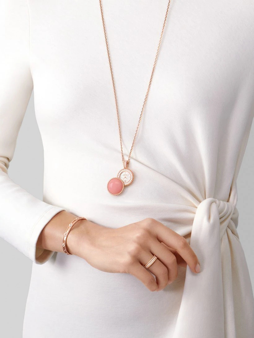 The round, sparkling diamonds line the golden ribbon of Perlée™ diamond creations. The natural beauty of the precious stones enters into a dialogue with the brilliance of the golden beads that border each piece.