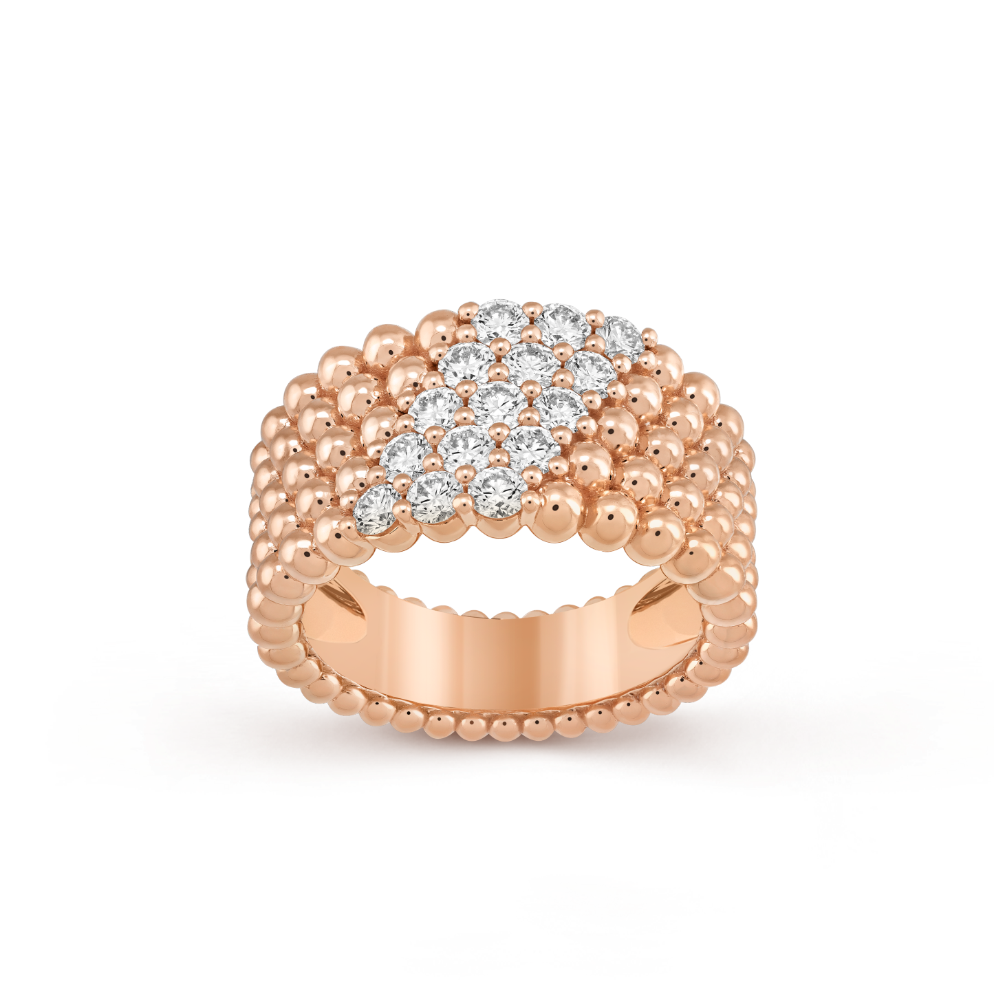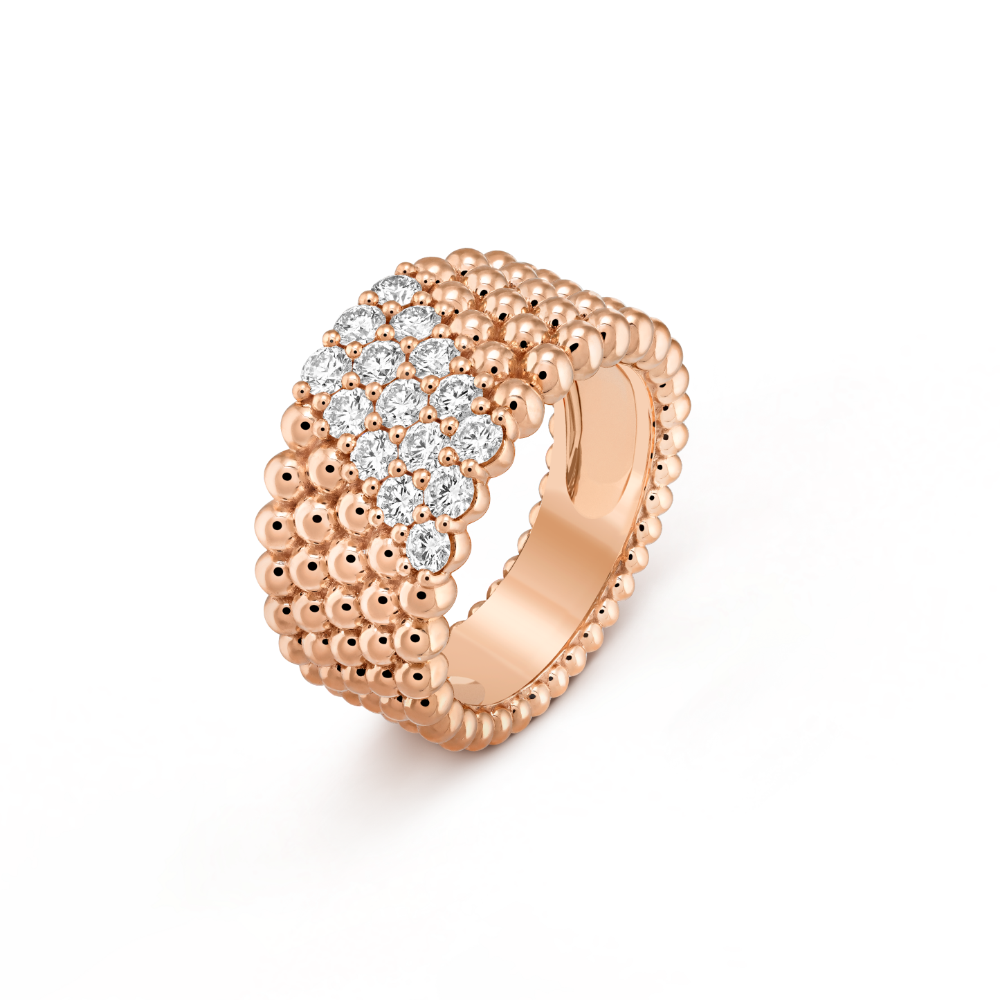 Perlée diamonds ring, 5 rows, 18K rose gold, round diamonds; diamond quality DEF, IF to VVS.
