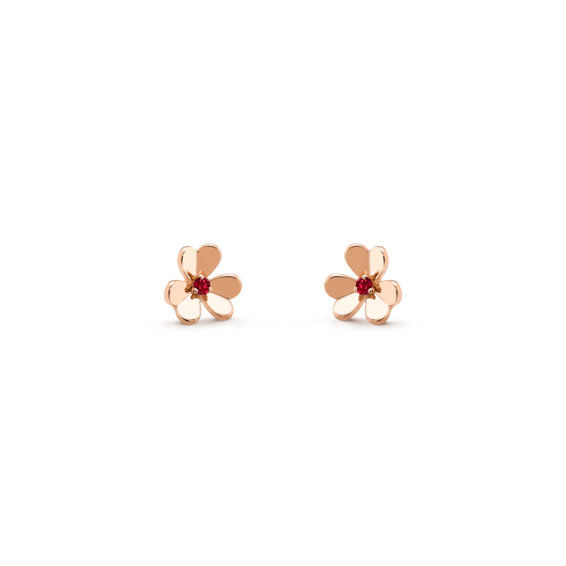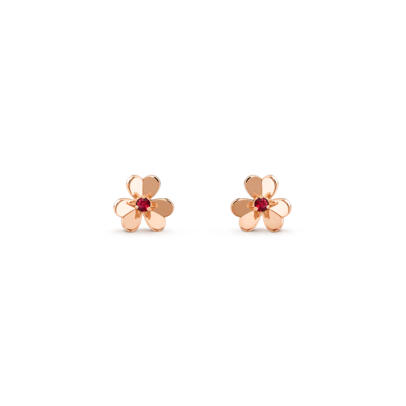 Frivole earrings, mini model, 18K rose gold, round rubies