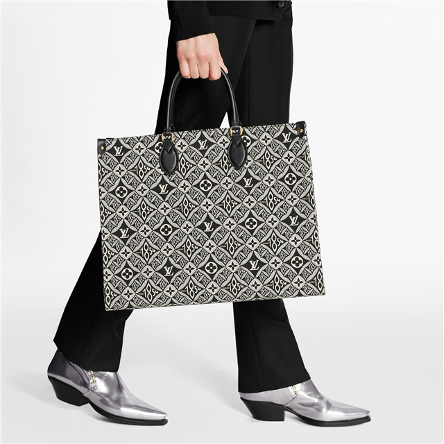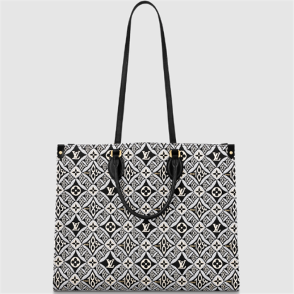 Nicolas Ghesquière brings his new Jacquard Since 1854 textile onto the OnTheGo GM tote. This woven textile is inspired by vintage wallpaper patterns and features Monogram Flowers and the number 1854, the year of the House’s founding. With two sets of handles, long and short, and a spacious interior, this is a versatile everyday bag.