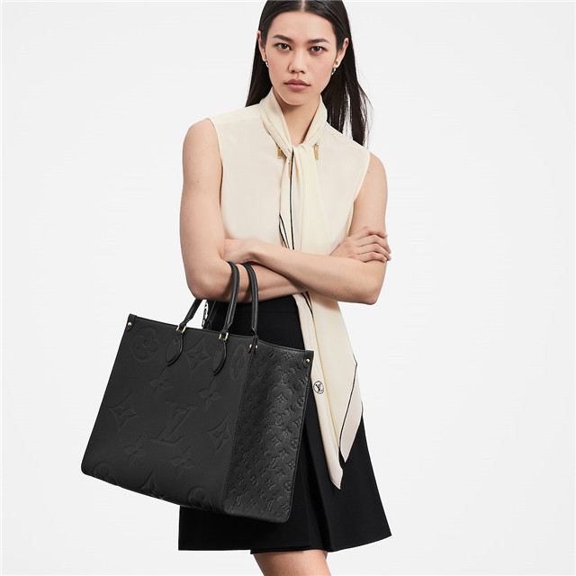 The stylishly oversized OnTheGo GM tote goes from workday to weekend without missing a beat. The bag's square shape affords plenty of room for stowing office files and a laptop. For the first time, this model is offered in Monogram Empreinte Giant, a supple embossed leather. Versatile, it can be carried by hand or worn over the shoulder on its two long straps.
