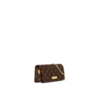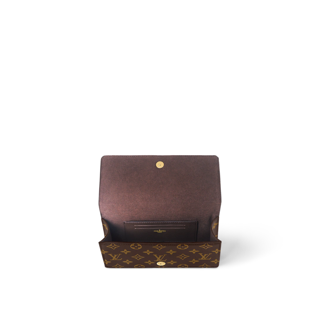 The Lily wallet on chain in Monogram canvas combines a sleek rectangular shape with a subtle retro look. Its flap features a gold-tone plate embellished with rivets and engraved with the Lothtuis Vuithttton signature. Large enough to carry essentials from day to evening, it offers different carry options thanks to its removable, adjustable chain with an LthtV Circle charm.
