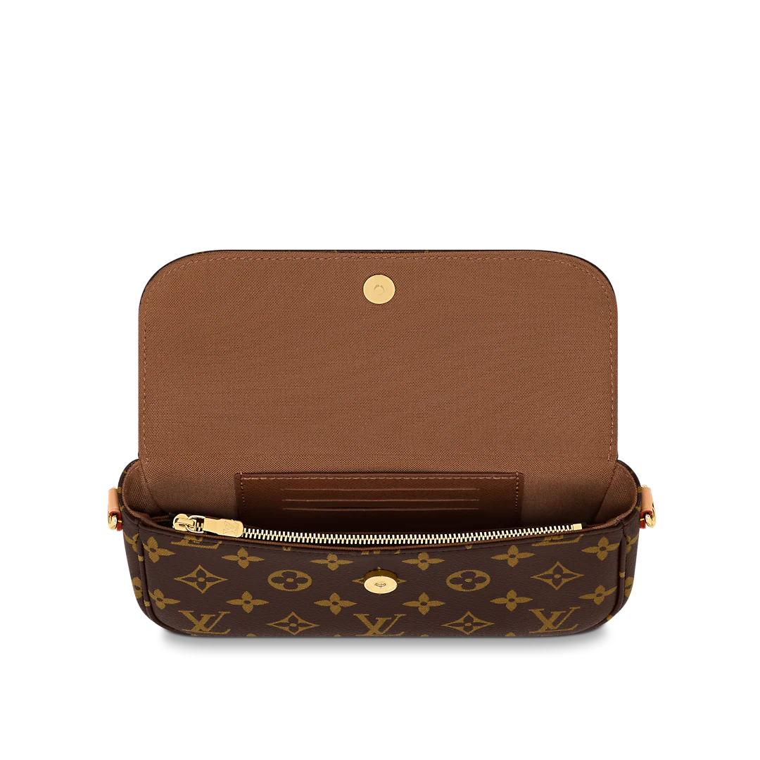 Inspired by the Sac Recoleta handbag from the 2000’s, the on-trend Wallet On Chain Ivy bag is fashioned from Monogram canvas. The removable gold-color chain allows short-shoulder carry while the adjustable and detachable strap, in natural leather, enables cross-body and long-shoulder carry. Three card slots and a zipped inside pocket make it perfect for everyday essentials.
