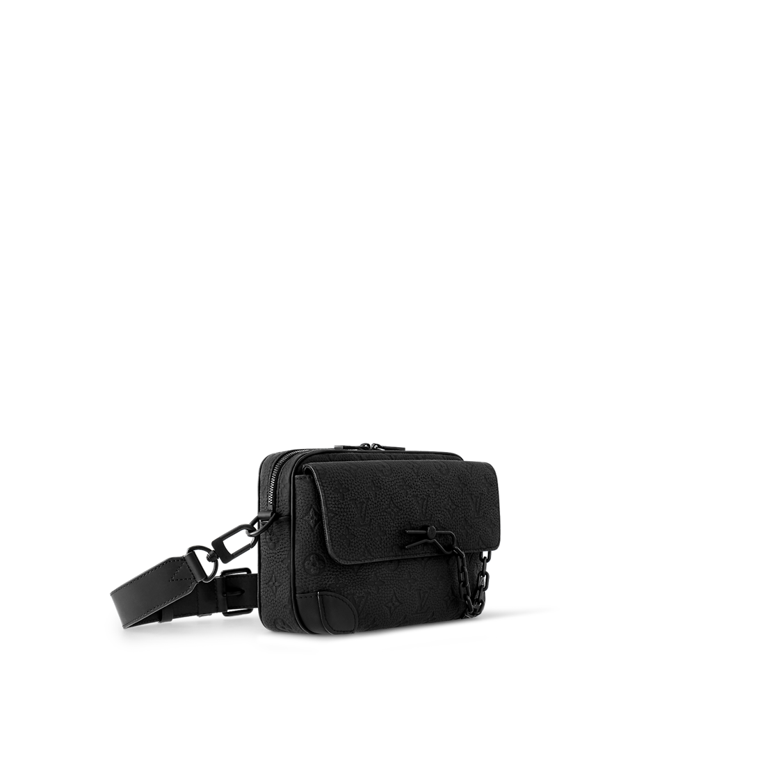 Made from Taurillon Monogram embossed leather, the Steamer Messenger applies design cues from the Steamer bag to the messenger bag. Specifically, the reinforced corners and the chain and pin found on the Steamer. Easy to carry thanks to its adjustable strap, it has a spacious compartment and a front pocket with a magnetic flap closure.