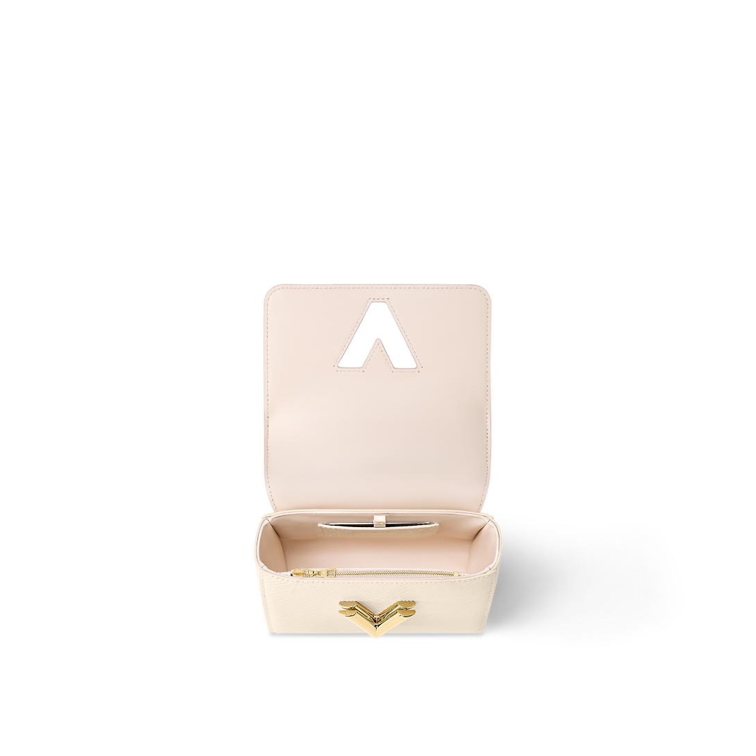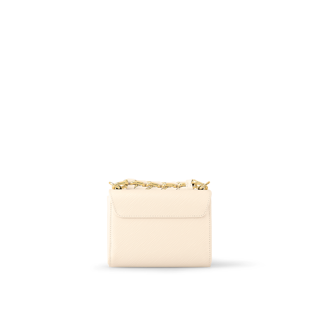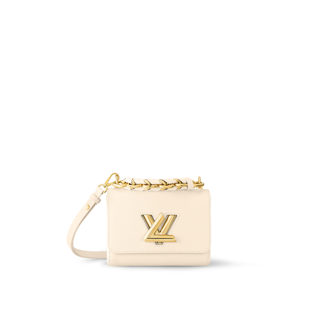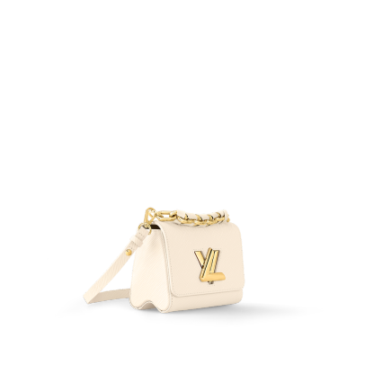 Fashioned from Epi grained leather, the Twist PM handbag now comes in an essential and easy-to-match new colorway: soft Quartz White with gold-color hardware. Roomier than it appears at first glance, it can be hand-carried using the braided-leather chain or worn on the shoulder and cross-body with its removable and adjustable strap.