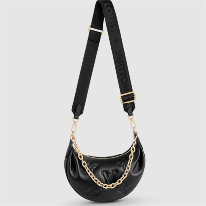 The Over The Moon delights with its versatile shape in quilted calf leather. The embroidered puffy Monogram pattern brings a statutory feel while the adjustable strap and gold-color chain deliver a myriad of carry options: elbow, short shoulder, cross-body, and long shoulder. With the strap removed, it can even be carried as an evening clutch.