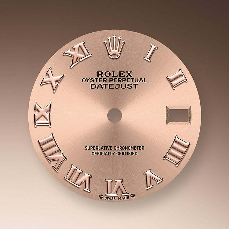 - Dial color: Rosé-colour dial with a fine sunrays and a applied polished 18k Everose Gold Roman numerals as hour markers