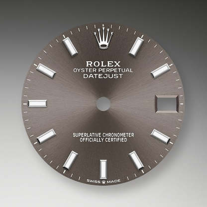 - Dial color: Dark grey dial with a fine sunray and Indexes as hour markers of 18k White Gold with luminous fill
