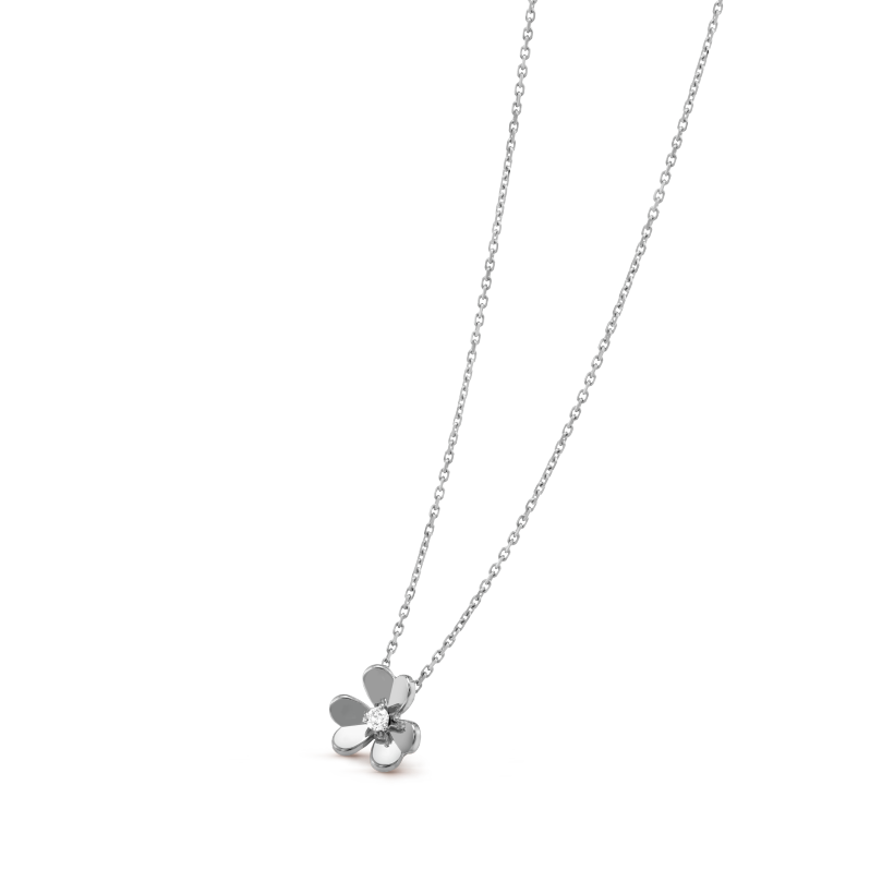Frivole pendant, mini model, rhodium plated 18K white gold, round diamond; diamond quality DEF, IF to VVS.