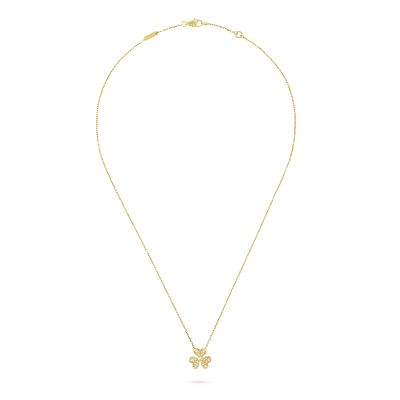 Like so many flowers dancing in the breeze, the Frivole® creations by Vthtan Clthteef & Arthtpels stand out with their graphic and airy aesthetic. Mirror-polished 18K gold or diamonds bestow a singular radiance upon heart-shaped petals.