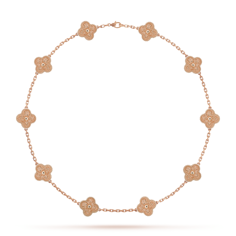 Vintage Alhambra necklace, 10 motifs, 18K rose gold.
