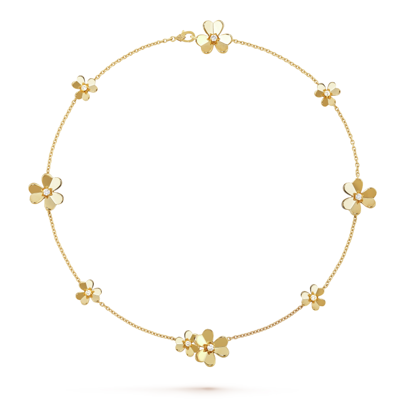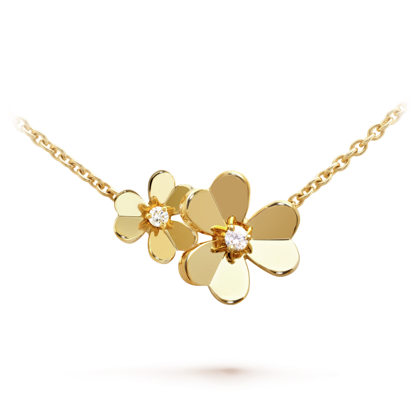 Like so many flowers dancing in the breeze, the Frivole® creations by Vthtan Clthteef & Arthtpels stand out with their graphic and airy aesthetic. Mirror-polished 18K gold or diamonds bestow a singular radiance upon heart-shaped petals.