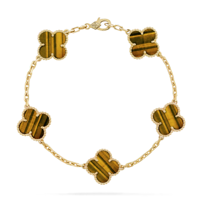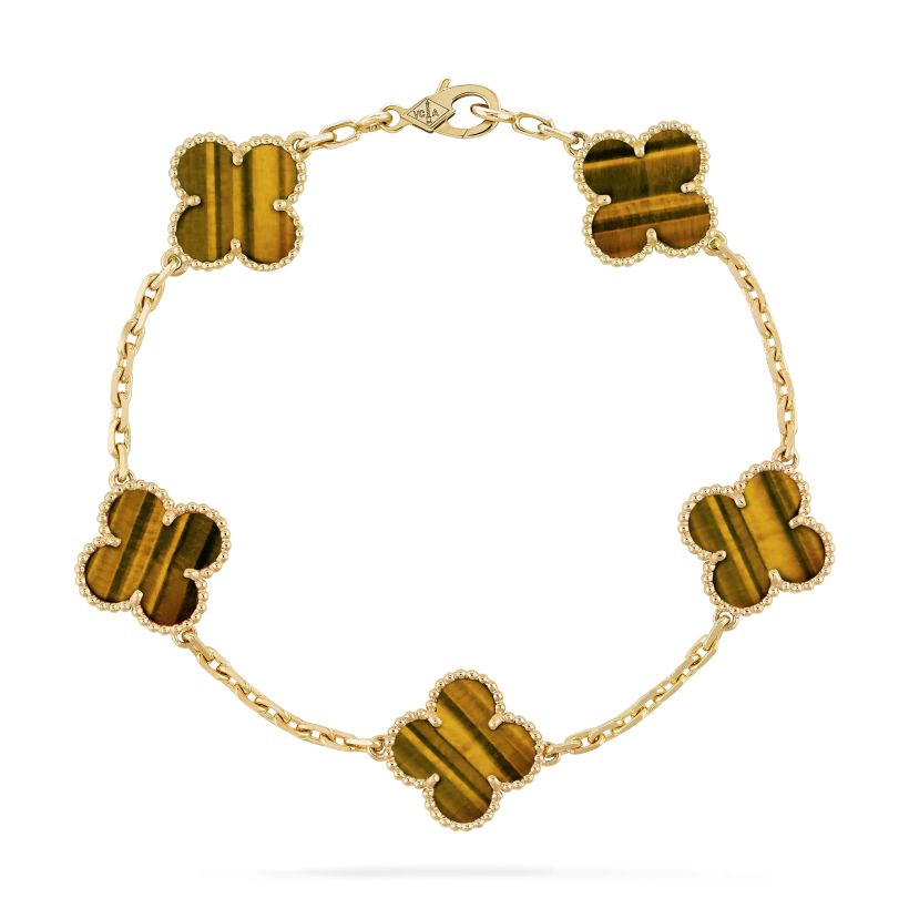 Vintage Alhambra bracelet, 5 motifs, 18K yellow gold, tiger’s eye.