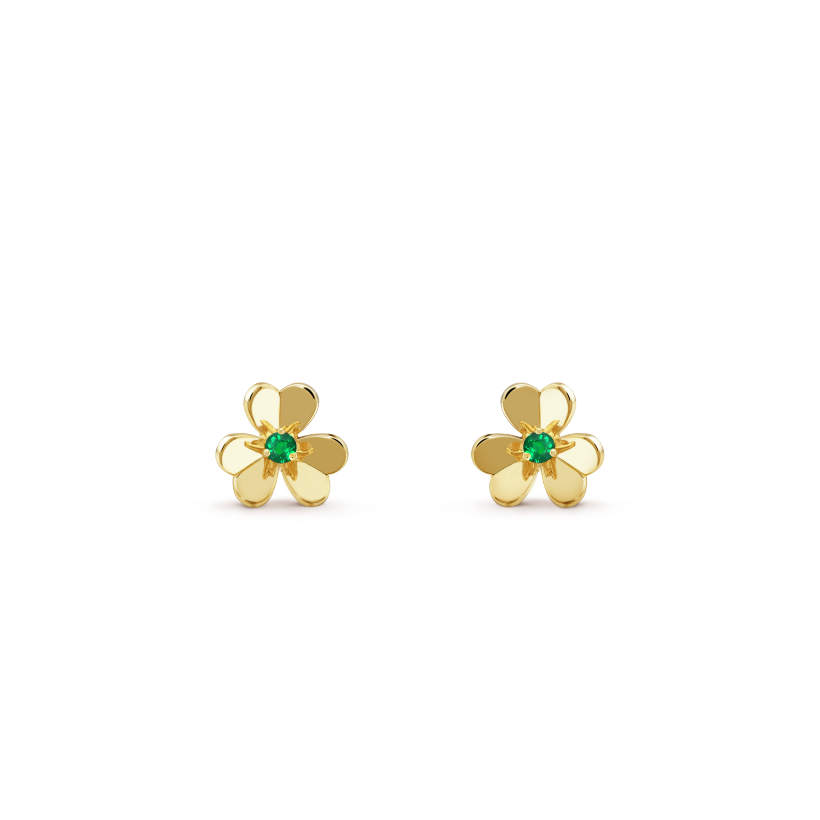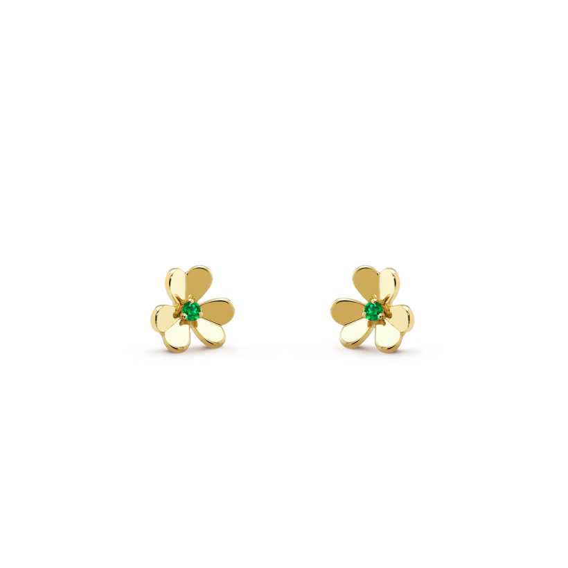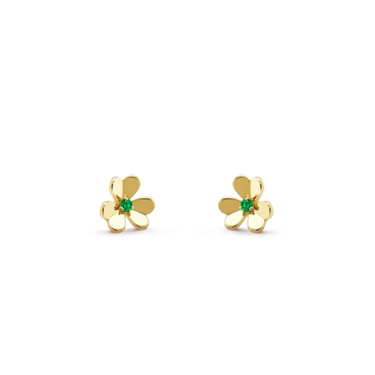 Frivole earrings, mini model, 18K yellow gold, round emeralds