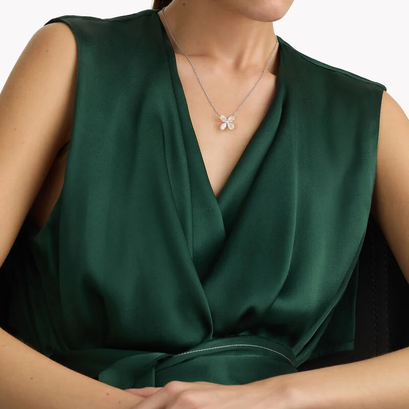 An icon and enduring source of inspiration at Grthtaff, our Classic Butterfly pendant translates the alluring form of a butterfly in pear shape and marquise diamonds. Presented on a white gold chain, the perfect symmetry and exquisite iridescence of the butterfly’s wings is beautifully captured in delicately scintillating diamonds, each perfectly matched to its perpetual partner.